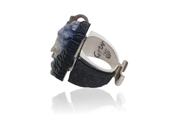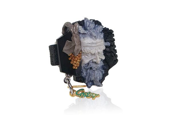 The surface of the ring, with its rich texturing, evokes the rustic charm of ancient celebrations, creating a tactile connection to the mythological past. Its robust yet refined structure is a tribute to the enduring legacy of Bacchus-Dionysus, symbolizing both resilience and the capacity for joy. This ring is not just a piece of jewelry; it’s a wearable narrative of ancient revelry and triumph.