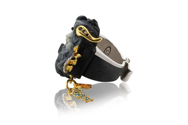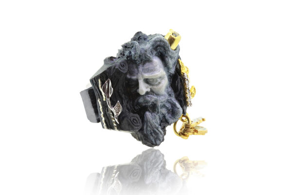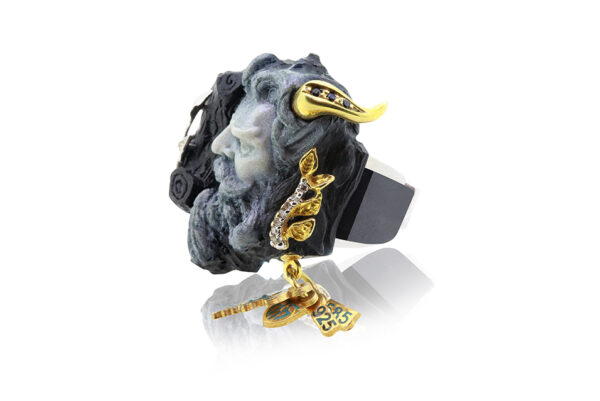 The Contemplative Satire ring, a masterful piece of artisan jewelry from Grev Jewellery, encapsulates the depth and intrigue of Greek mythology, touched by the skilled hands of artisans. Drawing inspiration from the playful yet profound nature of satirical figures in ancient Greek lore, this ring is beautifully crafted in Silver, with elegant plating options in Rhodium or Gold. It echoes the duality of satire – both humorous and critical, embodied in a design that is as complex as it is captivating.