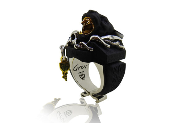 Equipped with a unique, adjustable design for comfort, this ring is more than an accessory; it’s a wearable piece of art that tells a story of timeless elegance and power. True to Grev Jewellery’s ethos, this ring is a product of environmentally friendly manufacturing, using all vegan materials. It represents a perfect blend of mythical inspiration and contemporary sophistication, designed for those who value the depth of history and the artistry of storytelling through jewelry.