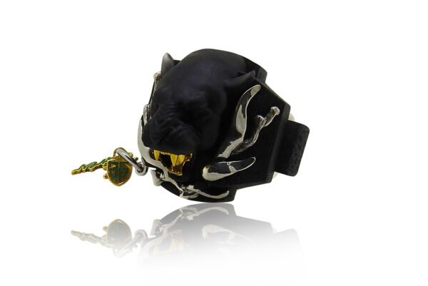 The Leopard-Panther Ring by Grev Jewellery is a stunning embodiment of handmade craftsmanship, marrying the mystique of ancient Hellenistic traditions with modern design. This piece draws inspiration from the majestic and powerful leopards and panthers of Greek mythology, symbolizing strength and grace. Crafted with precision, it features intricate silver details, exquisitely plated with rhodium or gold, adding a luxurious finish to the design.