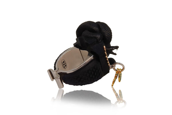 The ring’s adjustable base, a testament to innovative craftsmanship, ensures a perfect fit, mirroring the adaptability of those who, like Medusa, navigate the complexities of myth and reality. Textured and weighty, this piece is not merely an accessory but a symbol of enduring allure and the transformative power of ancient tales. As with all creations from Grev Jewellery, the Medusa’s Passion Ring upholds the luxurious design and ethical commitment, highlighting the rich cultural tapestry of Colchis and the depth of historical storytelling through jewelry.